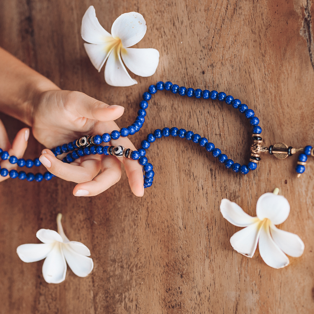 En portant le mala, vous permettez aux puissants effets du Lapis Lazuli d'entrer dans votre vie et de commencer à opérer des changements positifs.